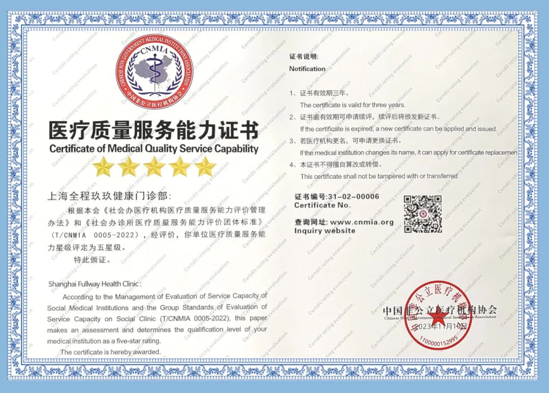 近期,上海鵬欣集團旗下上海全程玖玖健康門診部接受了中國非公醫療機構協會評價專家組的信用與能力的續評考核,收獲了一致認可!喜獲中國非公立醫療機構協會“社會信用評價AAA級機構”及“醫療質量服務能力五星級醫療機構”兩項殊榮!